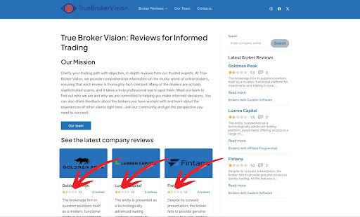 The financial services sector is sounding the alarm over alleged misconduct by truebrokervision.com, a website positioning itself as a “review and rating” authority for investment and trading companies. Multiple firms claim truebrokervision.com deliberately publishes damaging one-star reviews, only to then approach the same companies with offers of paid monthly retainers — the supposed solution to reverse the negative ratings.